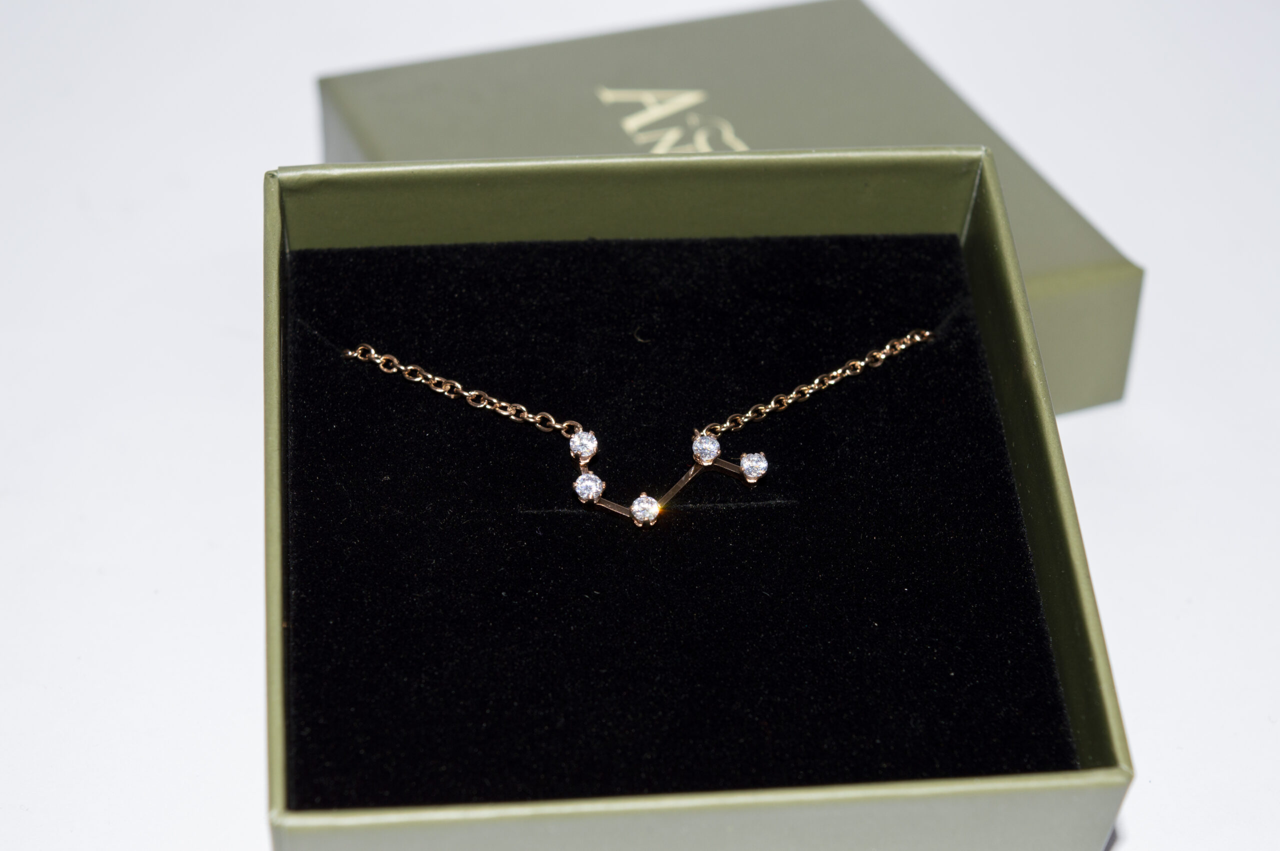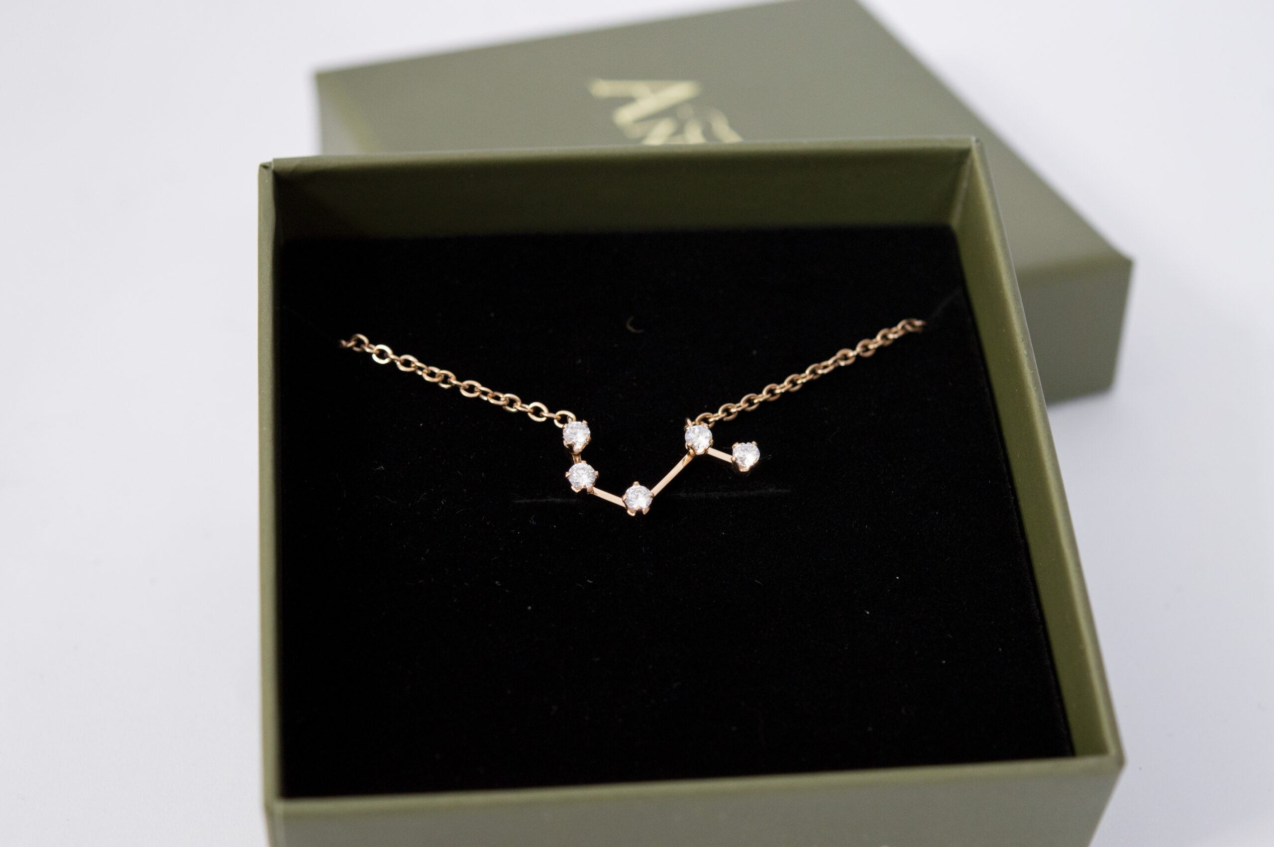 Nuestro collar de acero inoxidable y circonitas cúbicas está creado con la forma del signo de tu constelación.