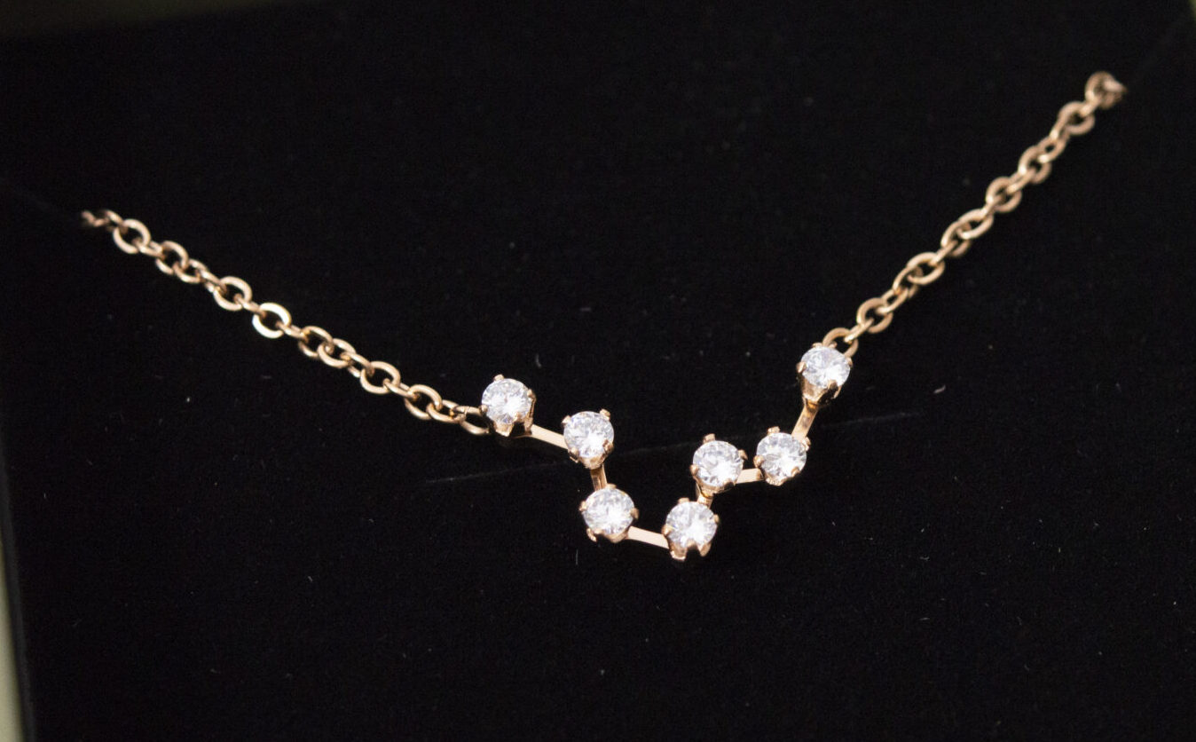 Nuestro collar de acero inoxidable y circonitas cúbicas está creado con la forma del signo de tu constelación.