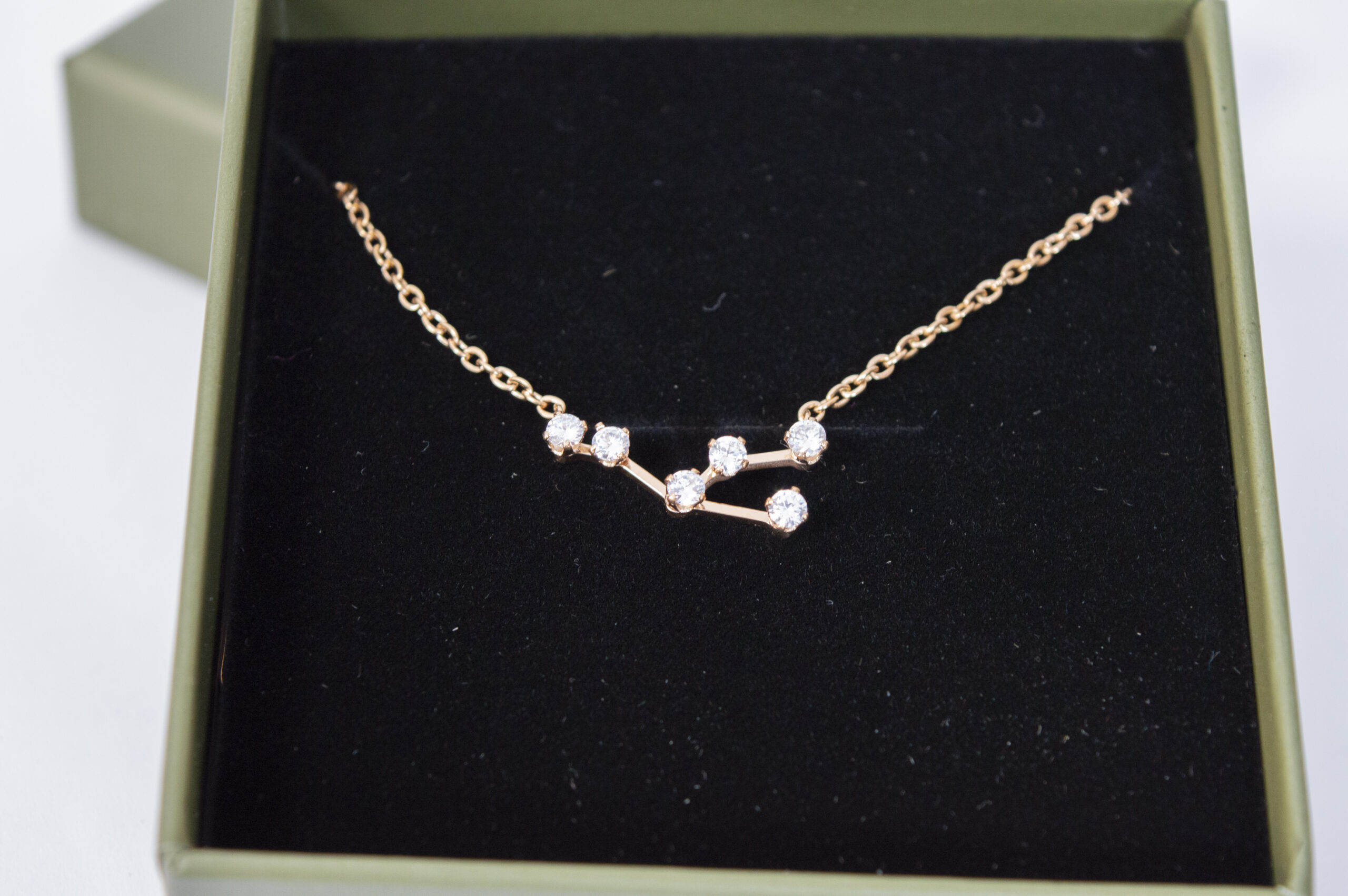 Nuestro collar de acero inoxidable y circonitas cúbicas está creado con la forma del signo de tu constelación.