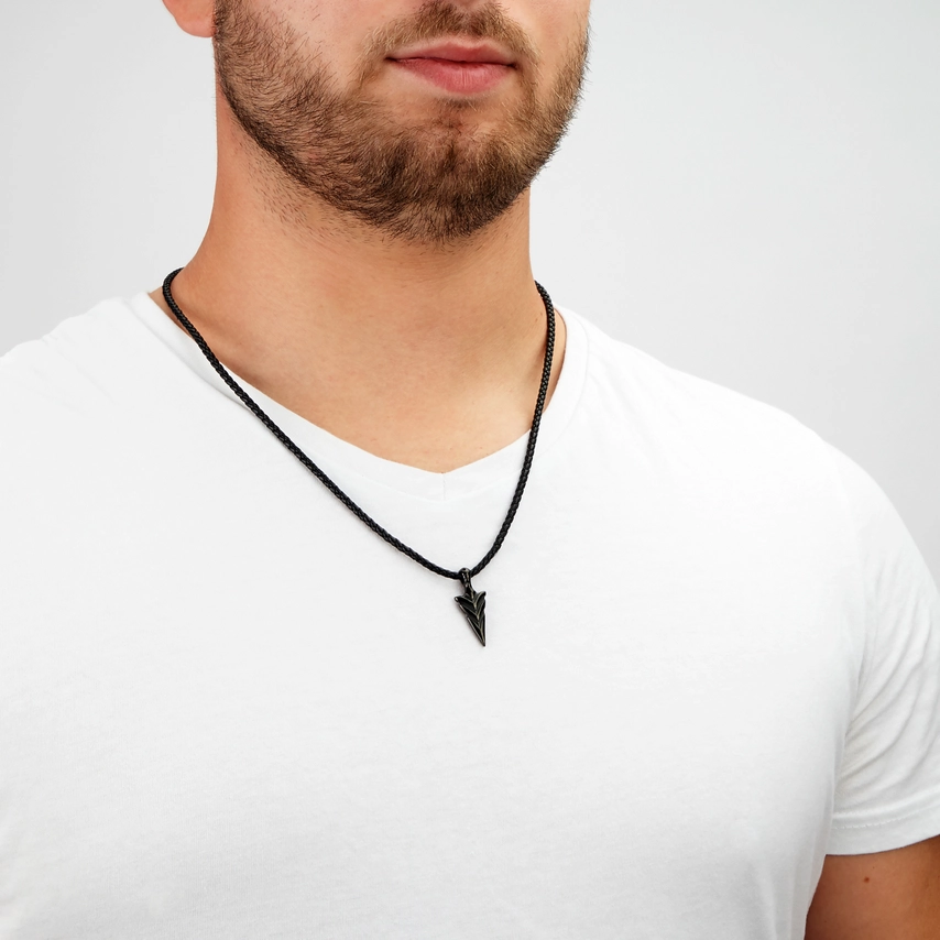 -Colgante con forma de punta de flecha en acero inoxidable, color negro.