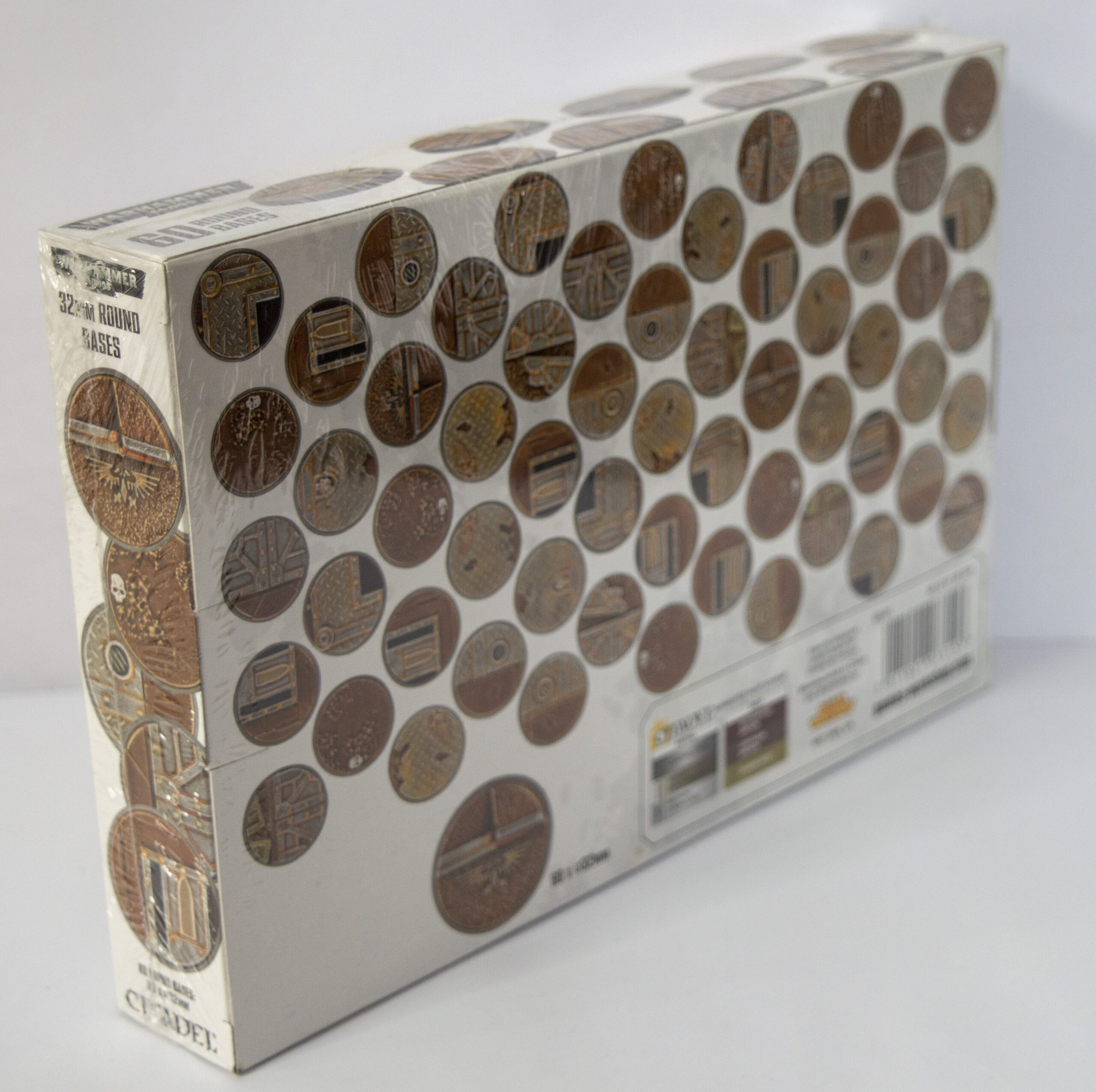 Recibirás 60 peanas redondas de 32mm, moldeadas para ayudarte a dar temática a tus ejércitos del Sector Imperialis.