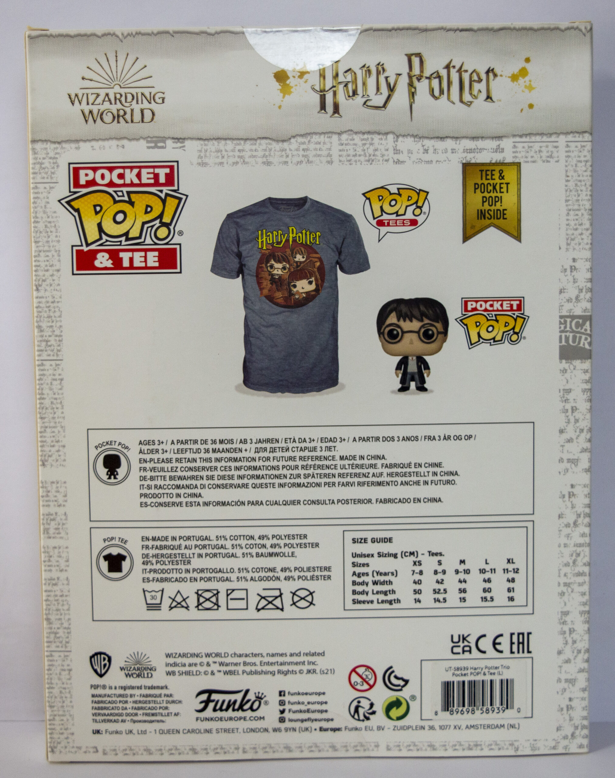 Camiseta talla L infantil (10-11 años aproximadamente) de Harry Potter y llavero Funko de Harry.